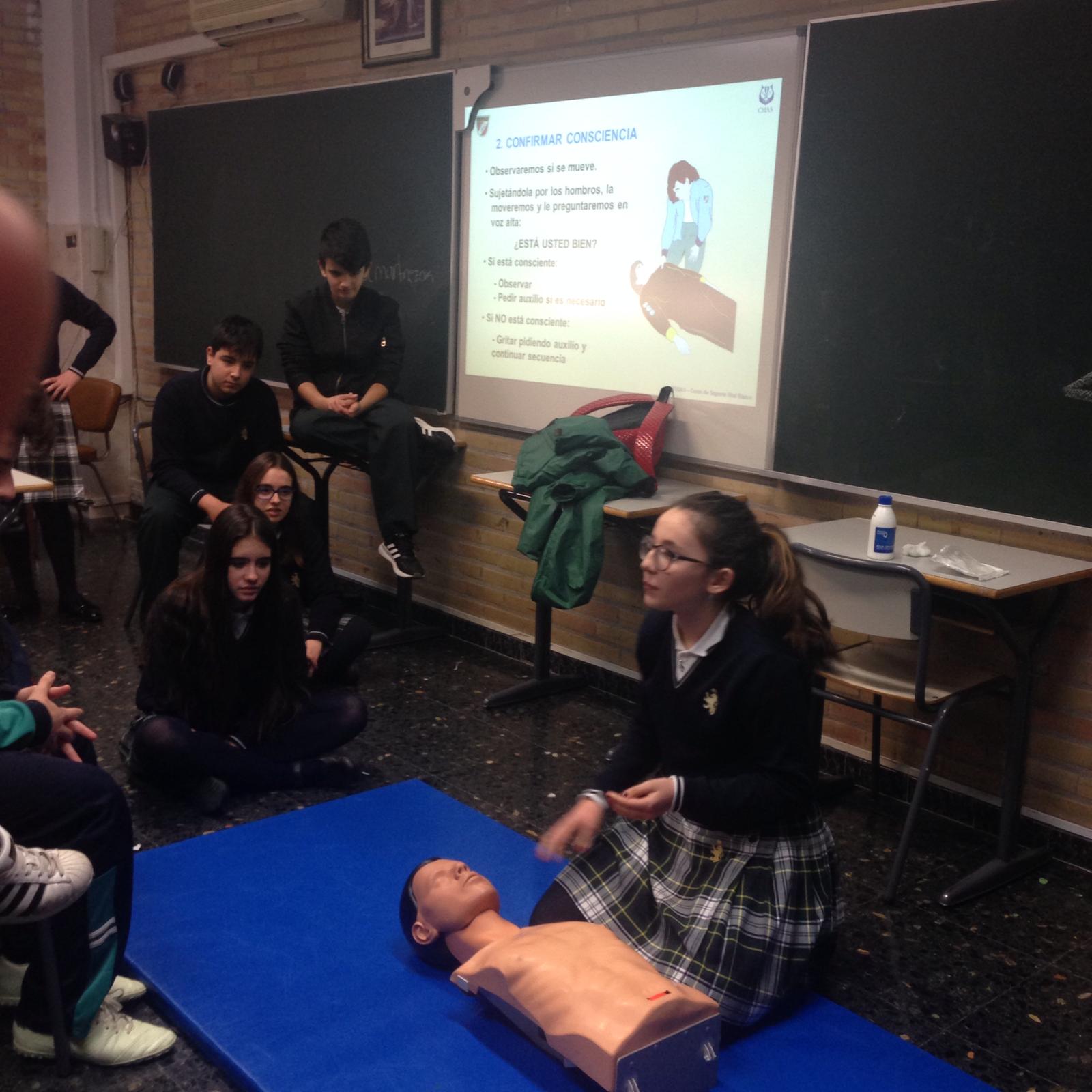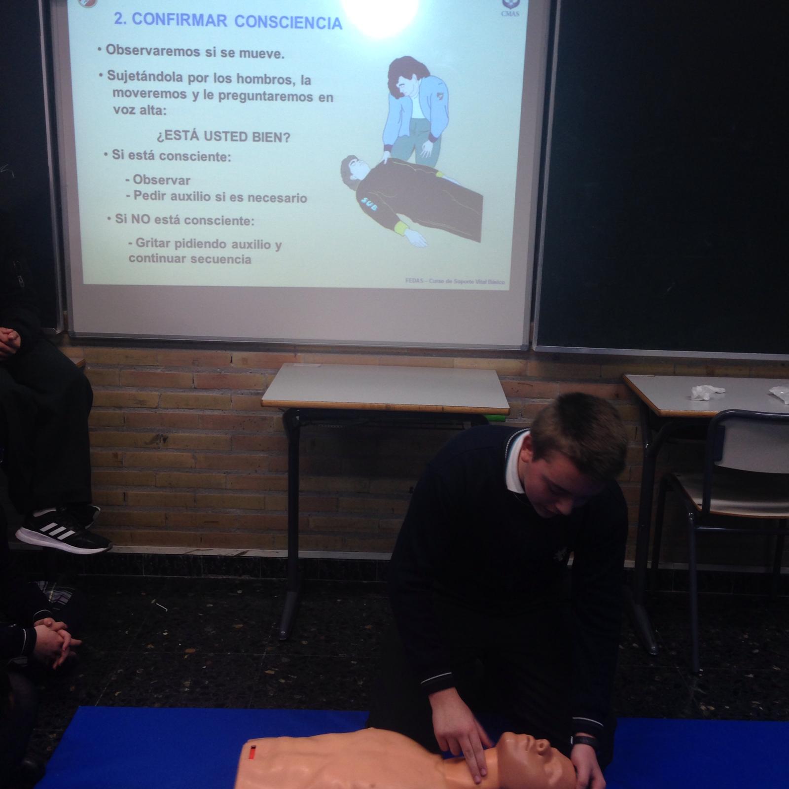 Los alumnos han puesto en práctica los conocimientos teóricos del RCP ensayando con un maniquí RCP AMBU asimismo se les ha enseñado el protocolo a seguir en caso de hallarse ante un accidente